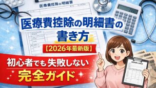 医療費控除の明細書の書き方を2026年最新版でわかりやすく解説。記入例・計算方法・保険金の扱い・e-Tax申請方法まで初心者向けに丁寧に紹介します。確定申告で損をしないための完全ガイドです。