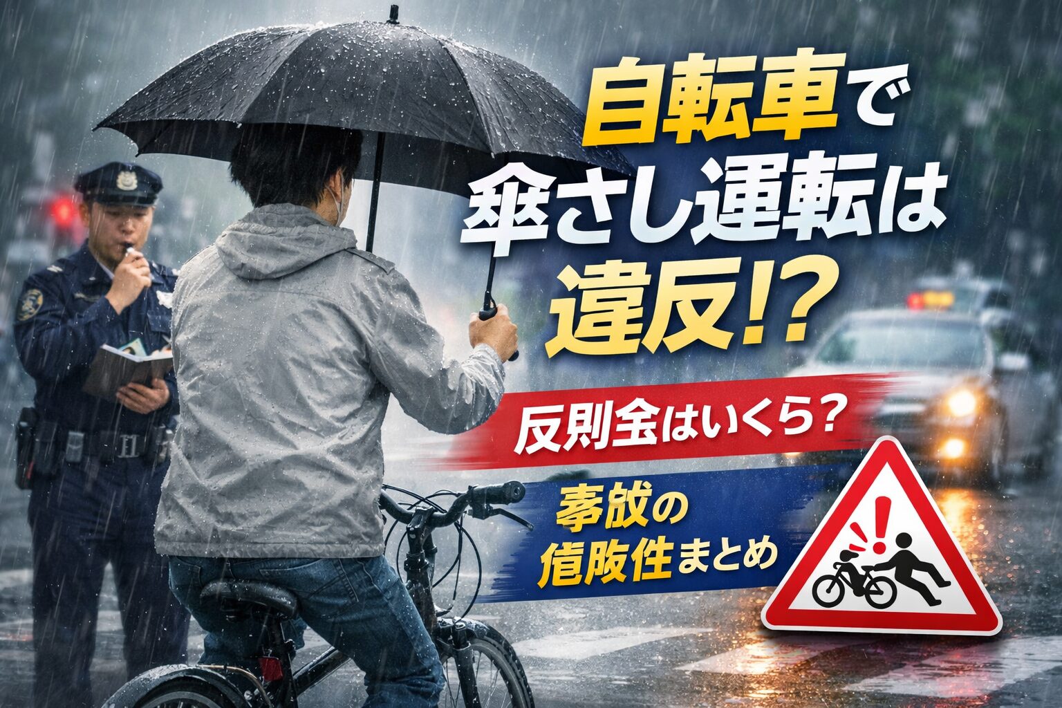 道路交通法では、自転車も「軽車両」として扱われており、安全に運転できない状態での走行は禁止されています。傘を持つことで片手運転になり、ハンドル操作が不安定になるため、「安全運転義務違反」に該当すると判断されるのです。